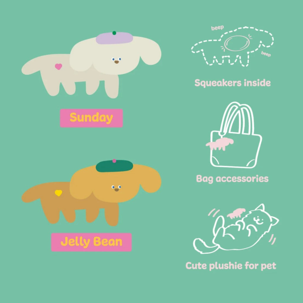 Sunday - This plushie features a cute, fluffy baby cream, with pink heart. Sunday is perfect for those who love a soft, cuddly companion.