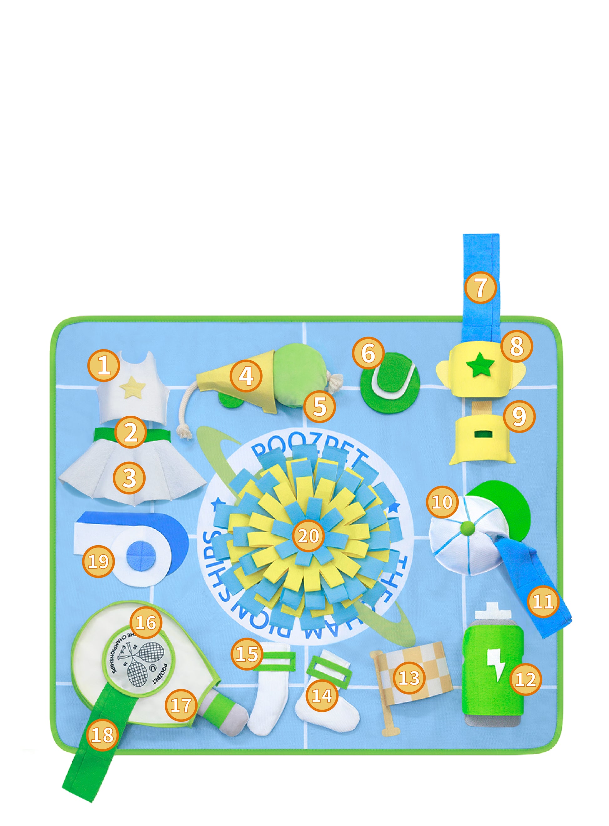 Tennis Racket Mat (with detachable tennis racket toy) - 690mm x 800mm (Largest size, up to 18 areas to hide treats)
