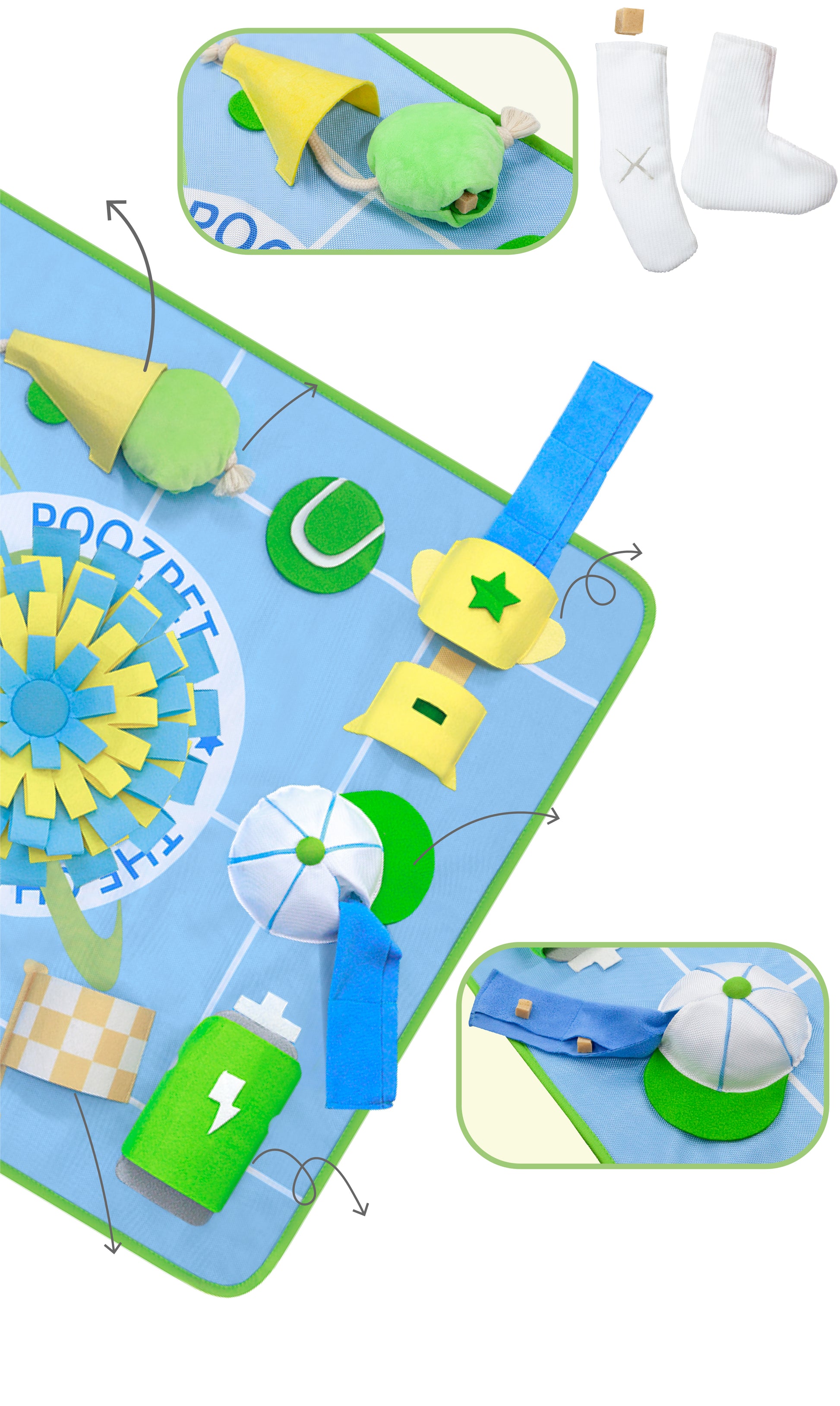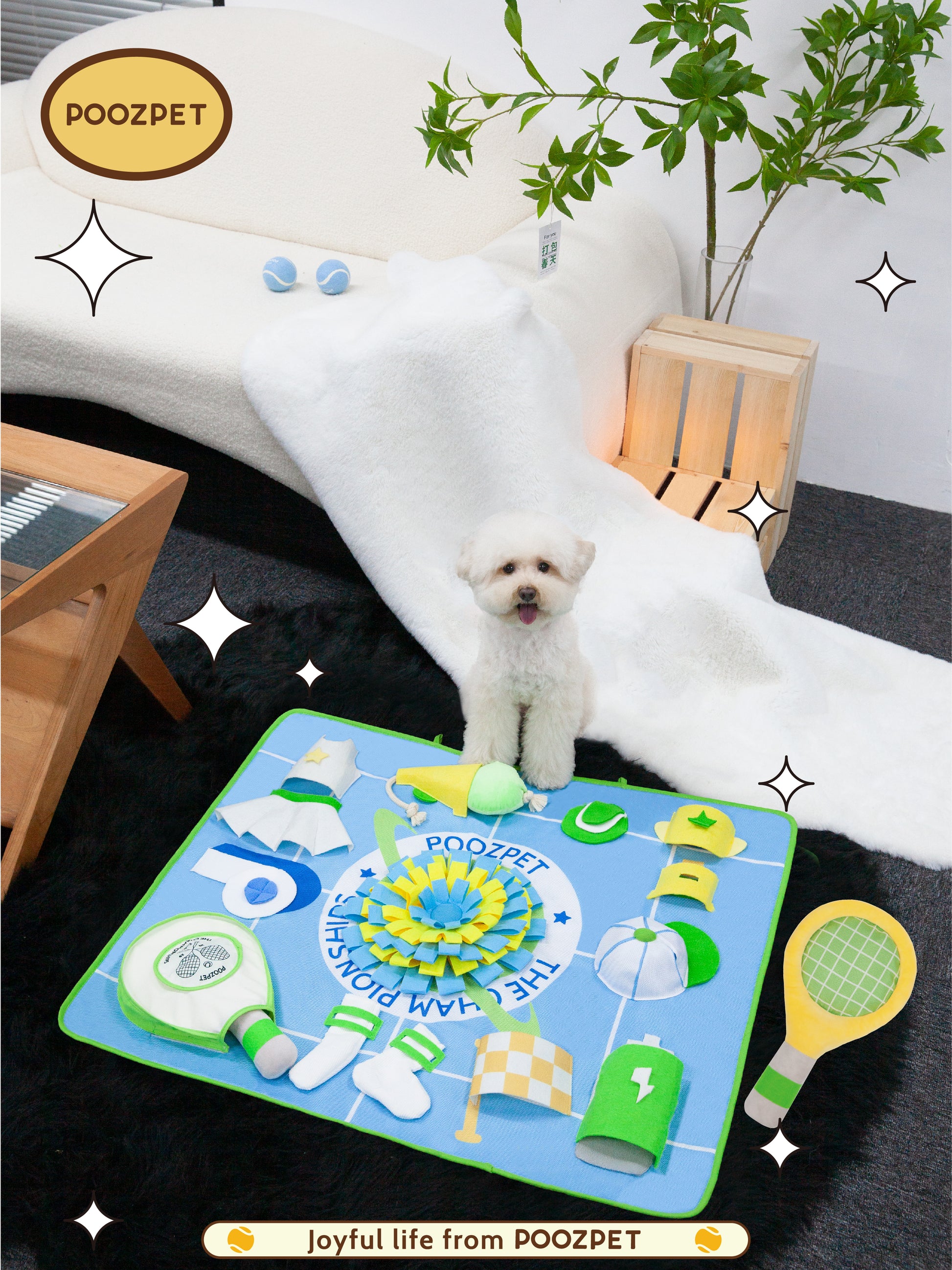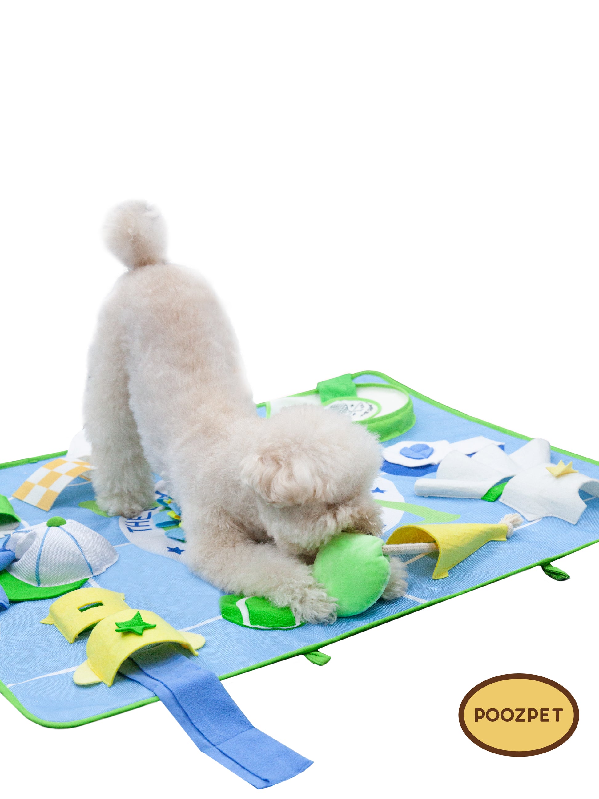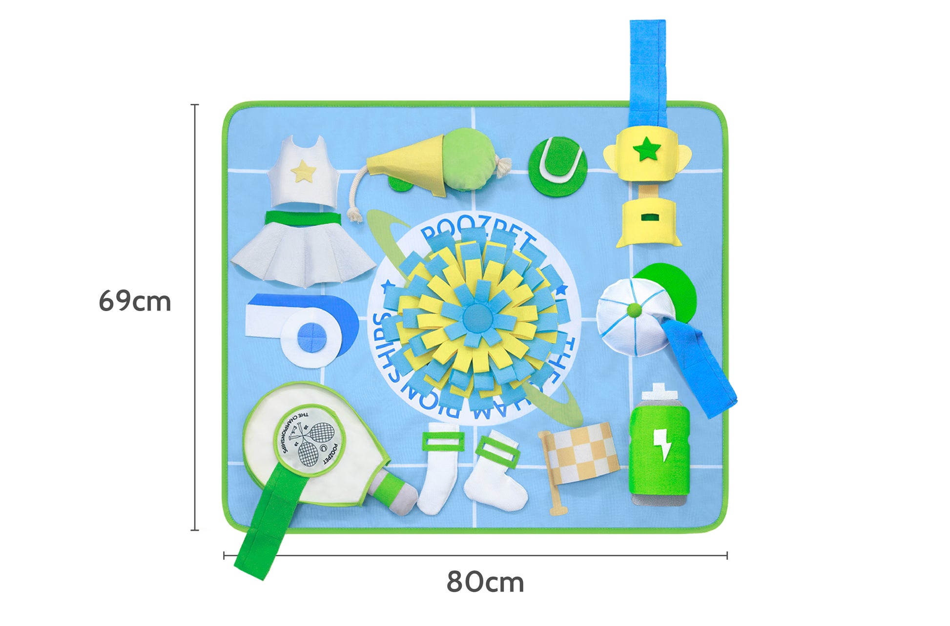 Perfect for tennis fans! Not your ordinary snuffle mat! This GIANT snuffle mat from Pooz Pets has plenty of pocket to hide treats and variety of textured surfaces for hours of sniffing delight. Did you know that 20 minutes of sniffing is equivalent to an hour’s walk in terms of enrichment? A tired pet is a happy pet so hide treats in this snuffle mat and let your pet sniff away! Suitable for dogs, cats, rabbits and guinea pigs!
