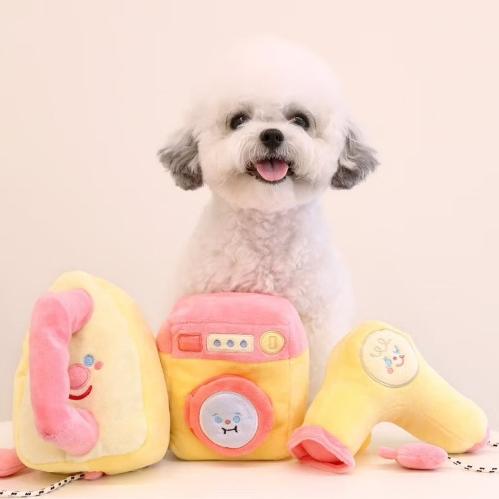 Add some fun and excitement to your furry friend's playtime with these unique household appliance-inspired dog toys! Each toy is designed with durable materials to withstand enthusiastic play, and they’re great for tugging, squeaking, and snuffling. These toys are perfect for keeping your dog mentally stimulated and physically active!