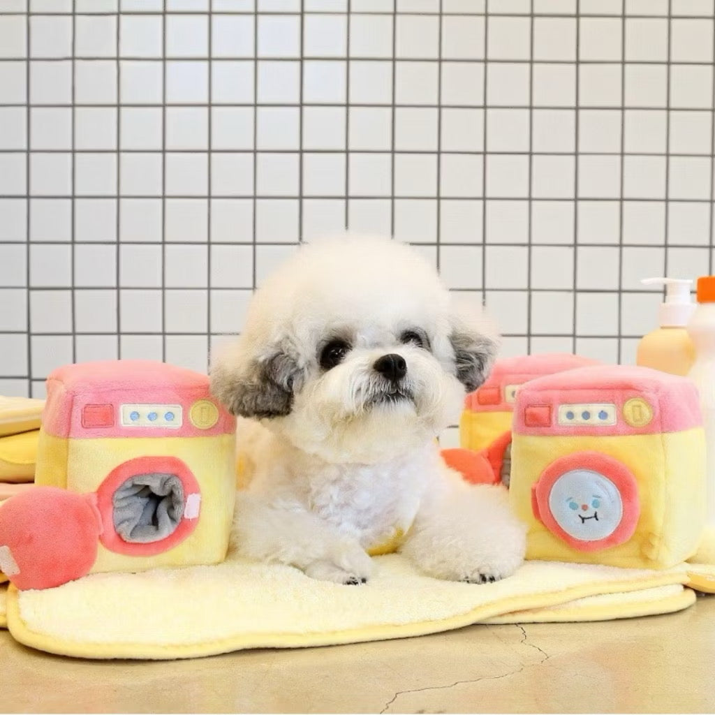 Washing Machine Toy: This adorable washing machine-shaped toy is equipped with a squeaker for fun noises, a crinkle sound for extra engagement, and a snuffle pocket for rewarding nosework. Perfect for dogs who love to explore and sniff!