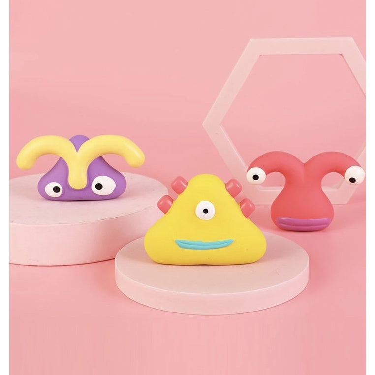 Japan Rubber Squeaky Monster Toys - Super Durable for small but strong chewers (Red Moustache)
