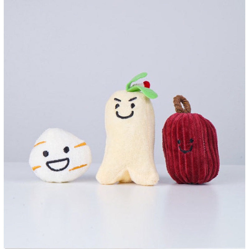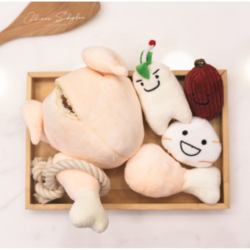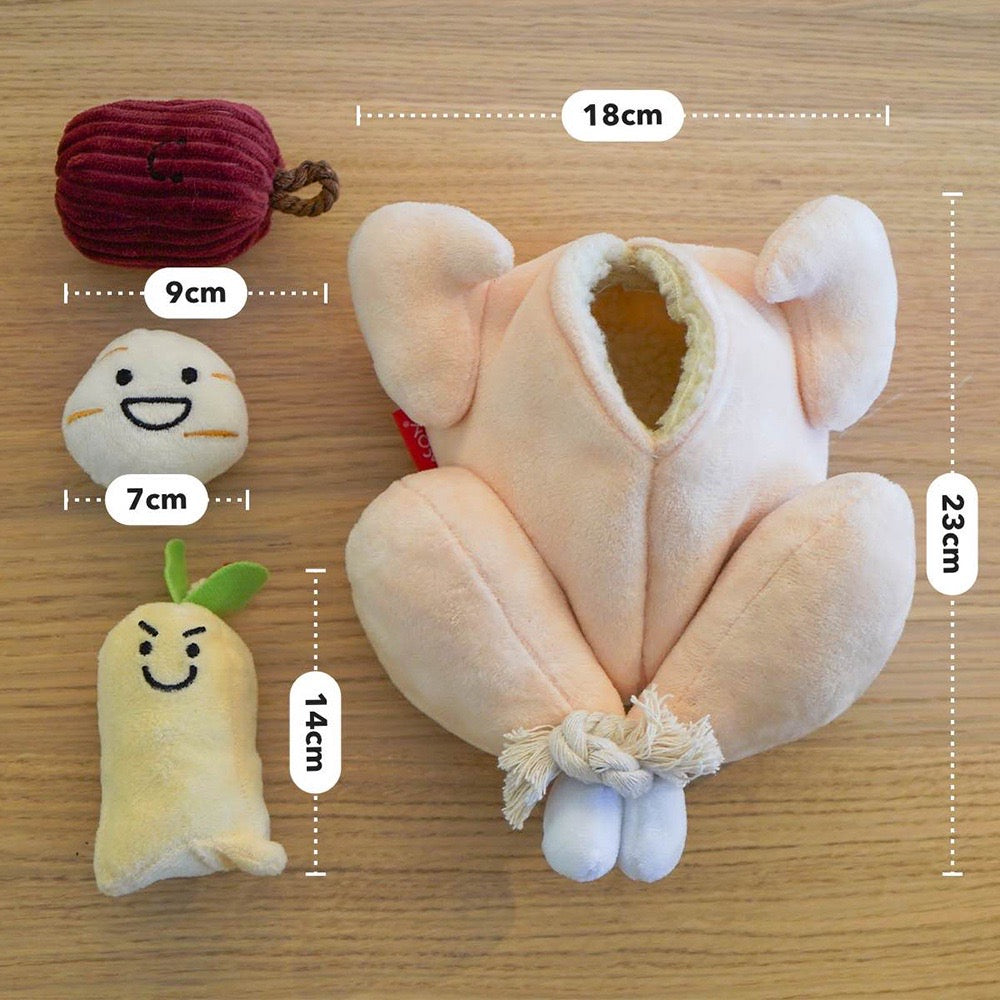 This Korean Ginseng Chicken toy comes stuffed with jujube toy, chestnut toy and ginseng toy. Dimensions are shown in photos.