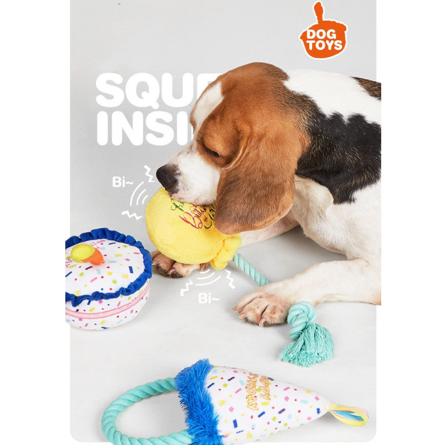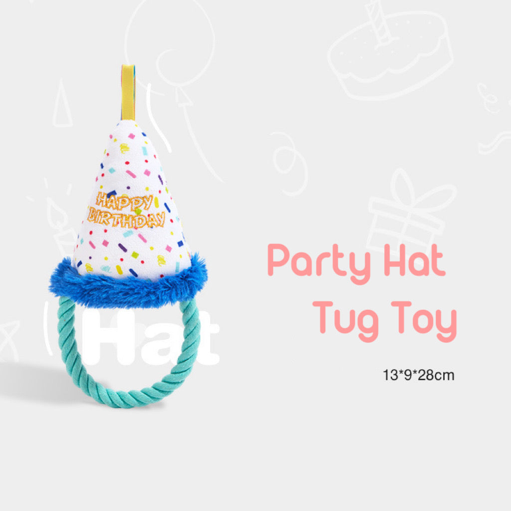 Party Hat Tug Toy - Adorable Birthday Party Squeaky Toys for Dog