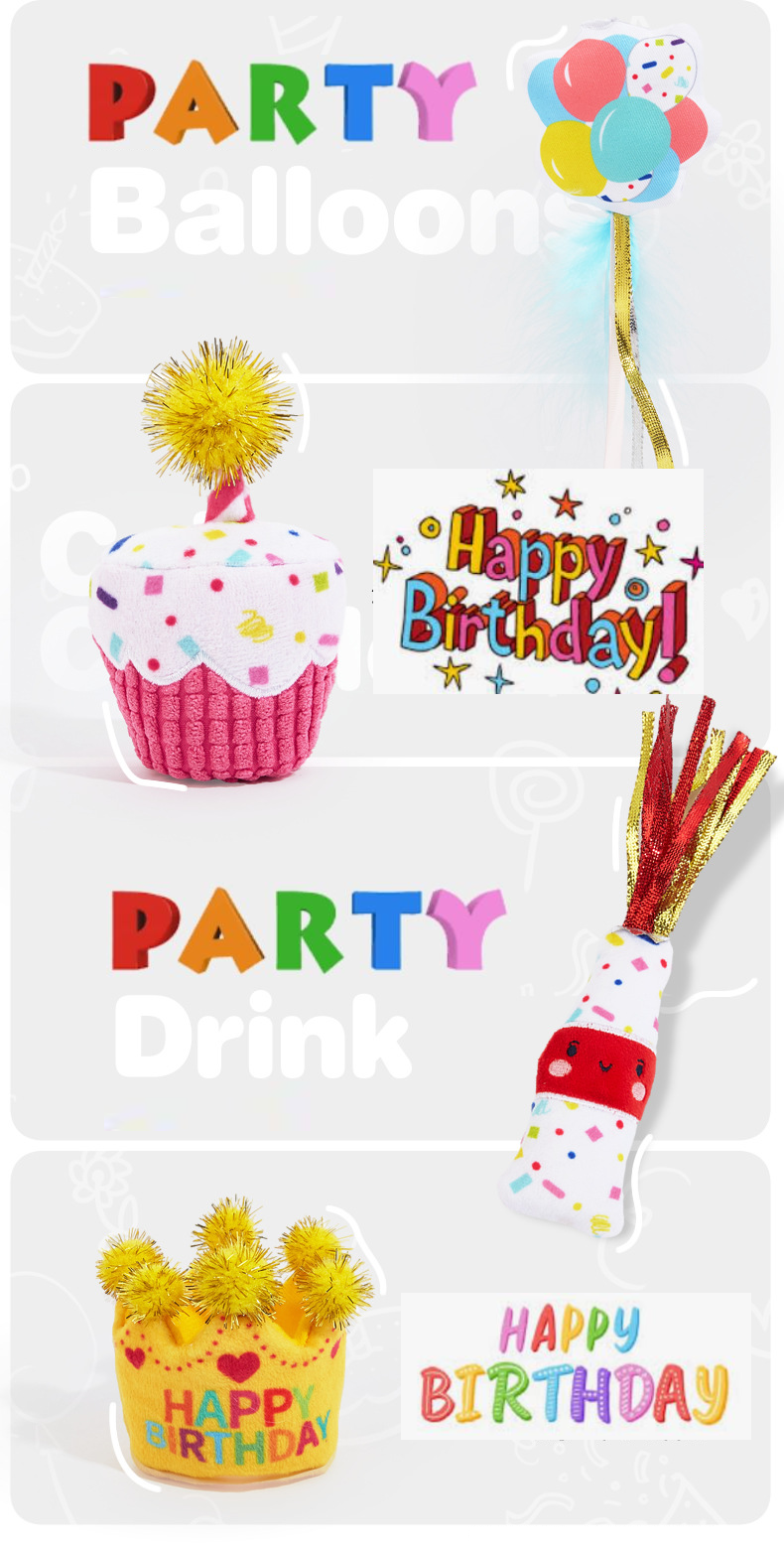 Party Paws Birthday Bash Pet Toys for Dogs/Cats (Catnip Birthday Balloon)