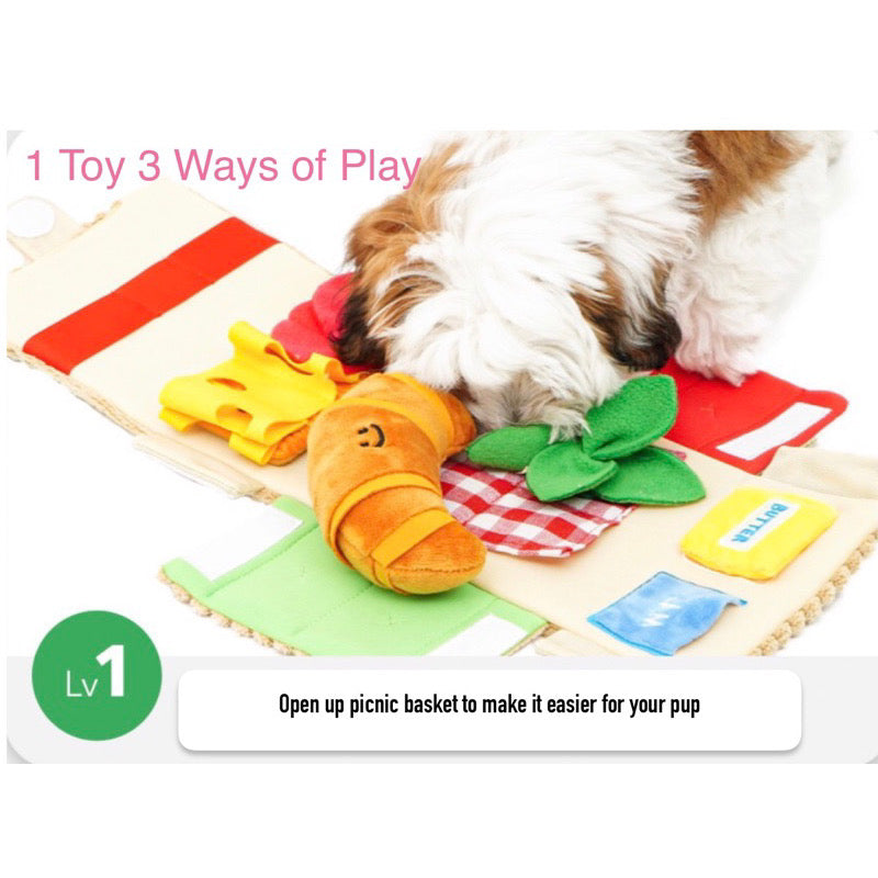 Picnic Basket Dog Toy Squeaky & Crinkly Snuffle Mat Nosework Toy
