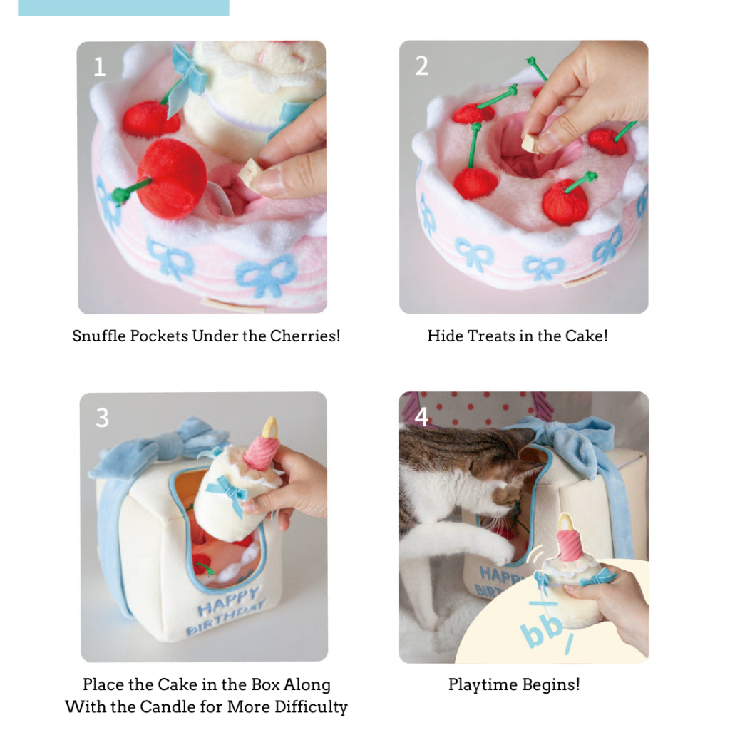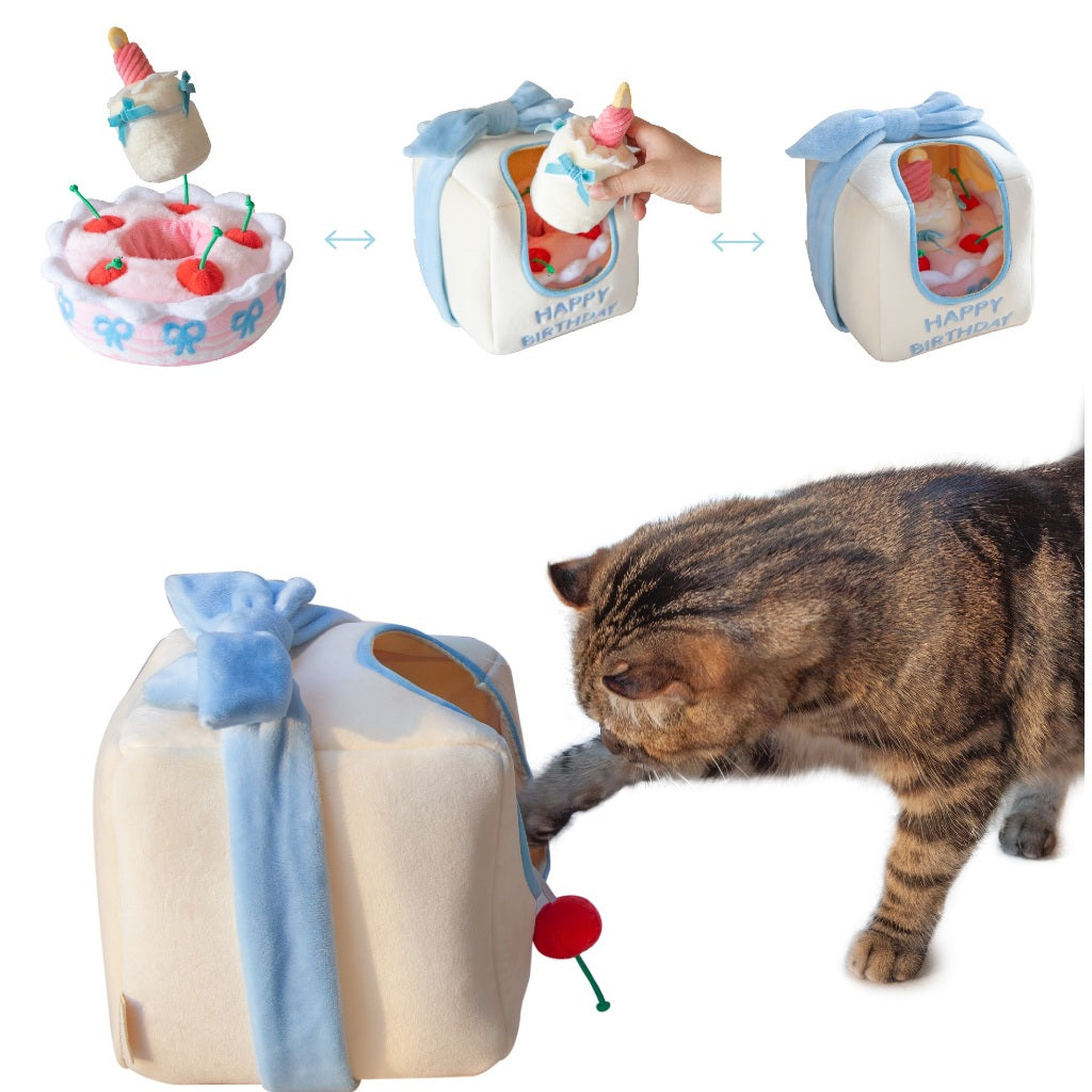 Celebrate your pet’s special day with a paw-ty they’ll never forget! This adorable snuffle toy set is shaped like a festive gift box with a cake inside—designed for both fun and enrichment.