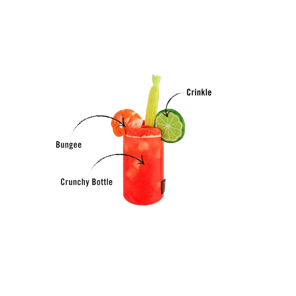 Fresh tomato juice blended with doggie-approved vodka, vinegar and cucumber, served in a crunchy bottle. Garnished with a celery stick great for gnawing. A slice of lime for added crinkly fun. What's not to be missed is bungee shrimp!