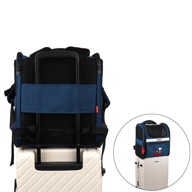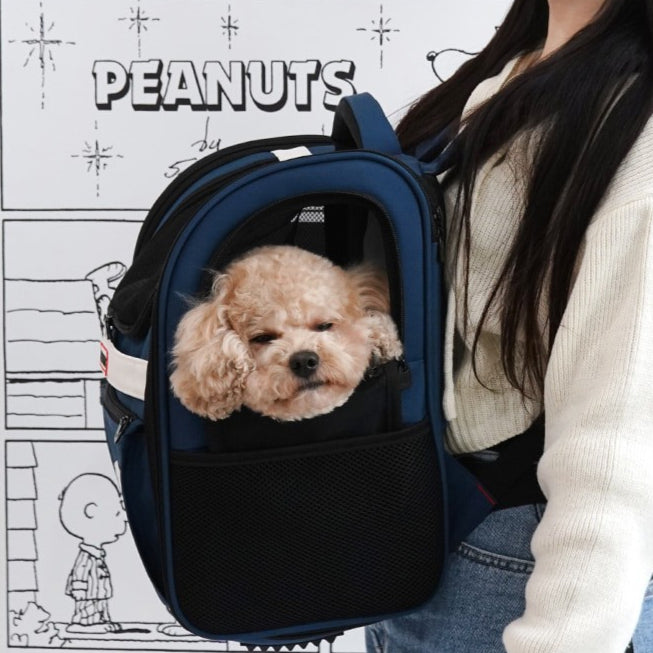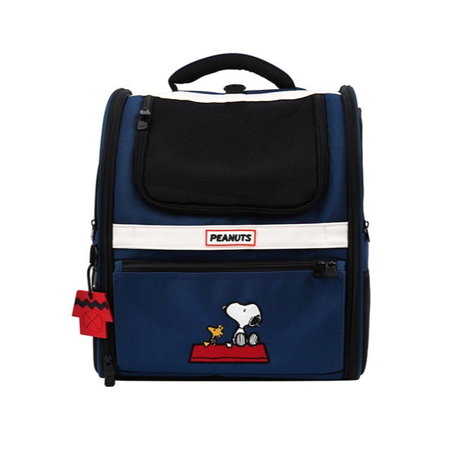 Take your pet everywhere in comfort and style with this Peanuts-themed front carrier backpack. Designed for travel—even air travel—it features breathable mesh panels for ventilation and a soft interior cushion to keep your pet cozy on the go. The front-facing design allows for close contact and easier interaction during outings. Bonus: it includes a keychain holder for used poop bags, so no more messy ties or awkward handling.