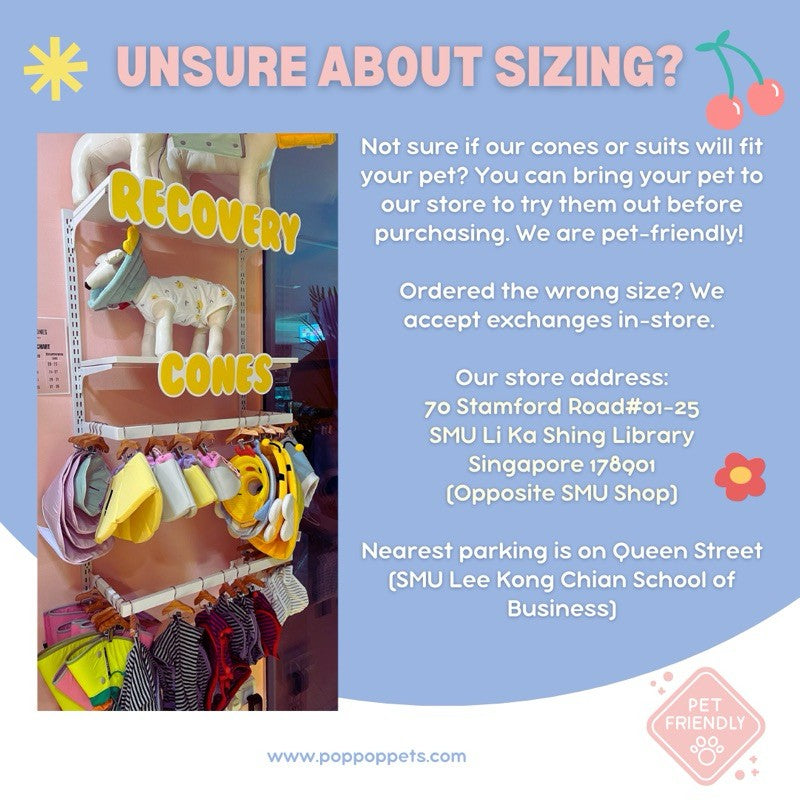 If you are still worried that your pets can still lick their wounds despite the cone, you can also get a recovery suit together with the cone. This is suitable for pets who have just been spayed/ neutered, have skin conditions, hot spots, allergies as it prevents them from scratching/ reaching their wounds. For more information, please refer to our recovery suit listing here: