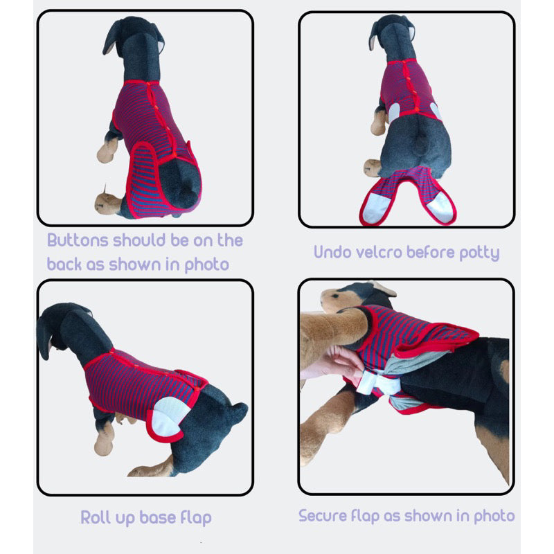 The recovery suit comes with a velcro base which can be easy rolled up when your pets need to potty.
