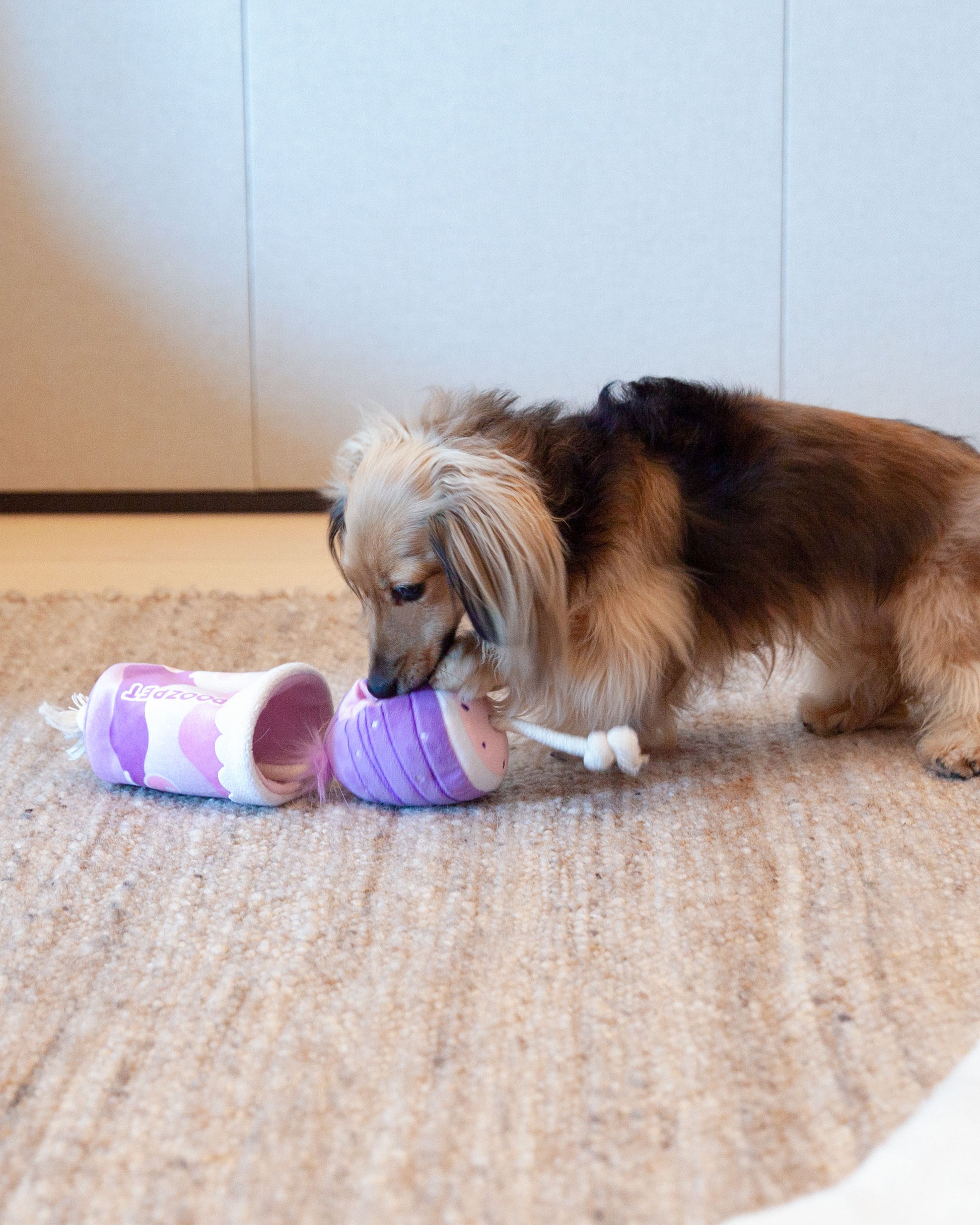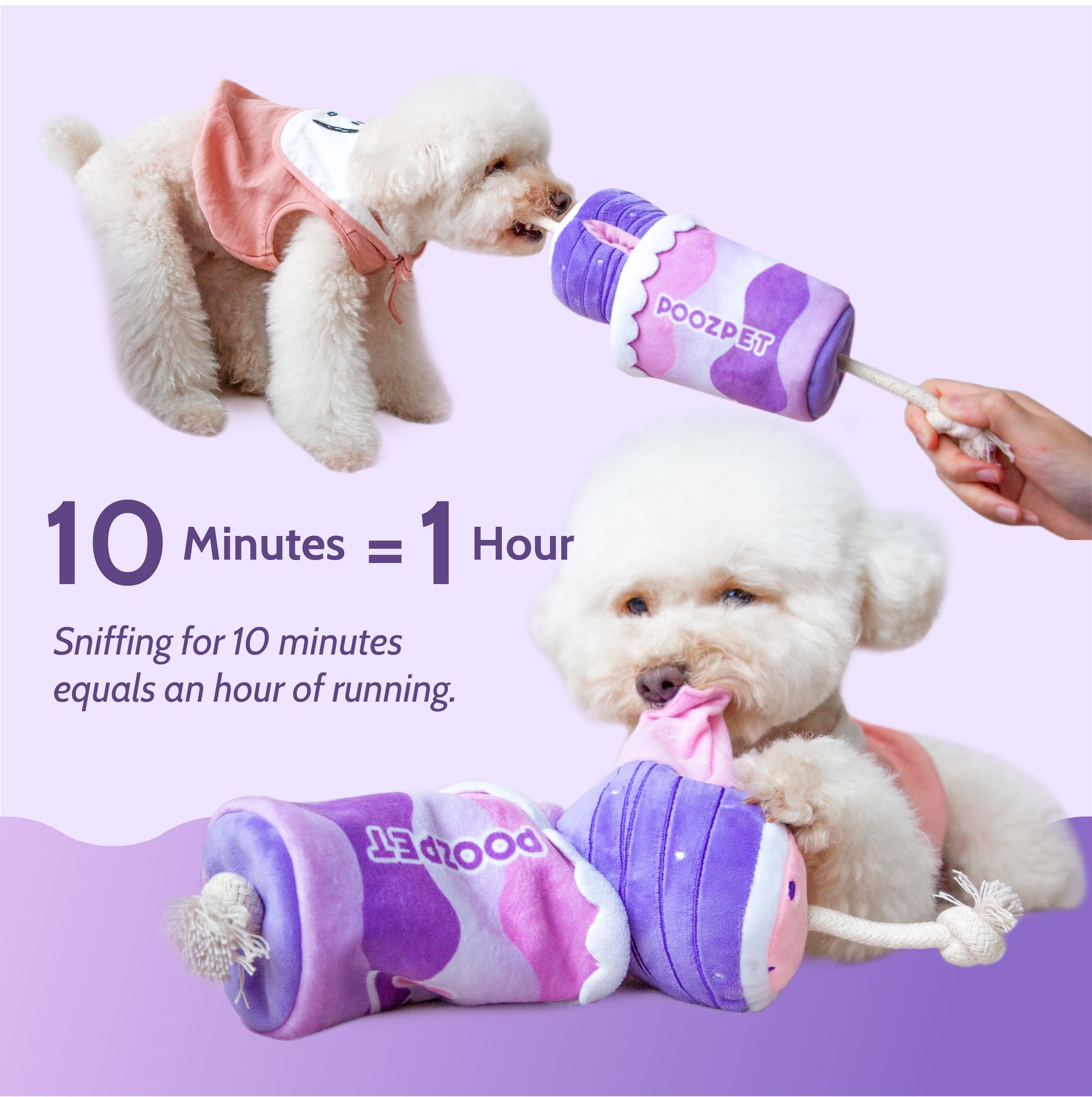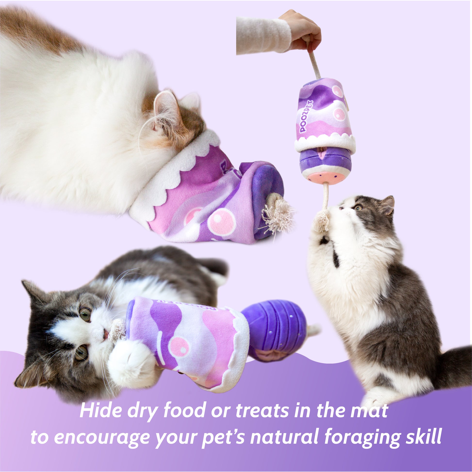 This is a perfect way to share our love for bubble tea with our pets! Crafted from durable, pet-safe materials, the taro milk tea snuffle toy encourages healthy mental engagement while satisfying your pet's curiosity. The soft fabric texture is gentle on their teeth and gums, making it perfect for playful chewing sessions.