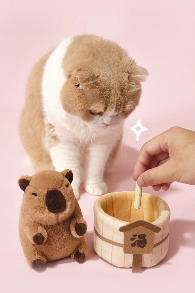 We can't resist this adorable Purlab Capybara Bath Time Bliss Pet Plush Toy! This plush toy showcases a capybara enjoying a peaceful soak. Its sweet, relaxed expression and detailed bath tub design make it irresistibly cute and engaging.