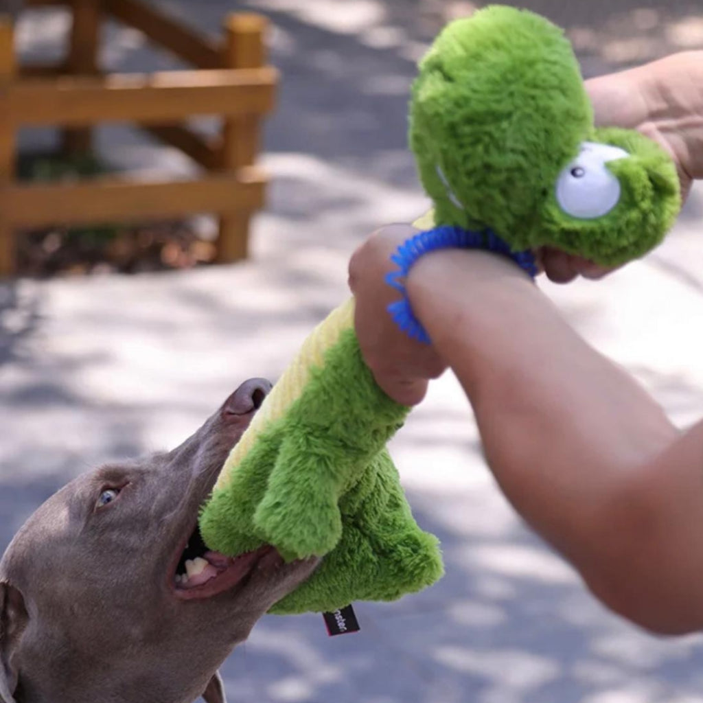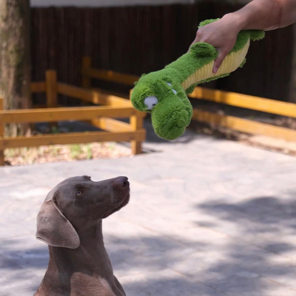 Bring some fun and excitement to playtime with this long-necked crocodile toy! The neck of the crocodile houses a long squeaker, providing endless entertainment with each bite and squeeze. Made from durable, pet-safe materials, this toy is designed to withstand plenty of rough play while keeping your furry friend engaged. Whether it's tug-of-war, fetch, or solo chewing time, they will love this unique and fun companion!