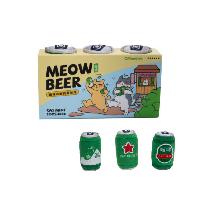 Qmonster Paw-some Companion Snuggly Pet Plush Toys with Catnip (Meow Beer)