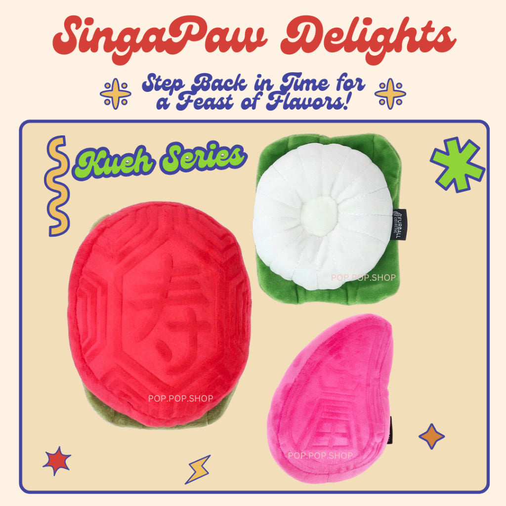 Pineapple tart dog toy is a cuddly and chewable "tart of good fortune" for your furkids - without the extra calories. How about a Tutu Kueh or Png Kueh for your kueh-loving friends? The adorable gem biscuits are also nostalgic reminders of childhood.