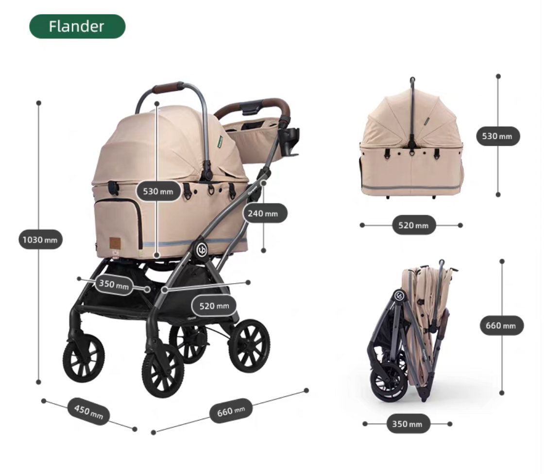 Built with a 15 kg max load capacity and weighing only 11 kg, Flander offers a sturdy yet lightweight solution for transporting small to medium-sized pets. Its spacious cabin size of 660x345x240mm ensures your furry companion has plenty of room to relax, while the stroller strikes the perfect balance between comfort and portability.
