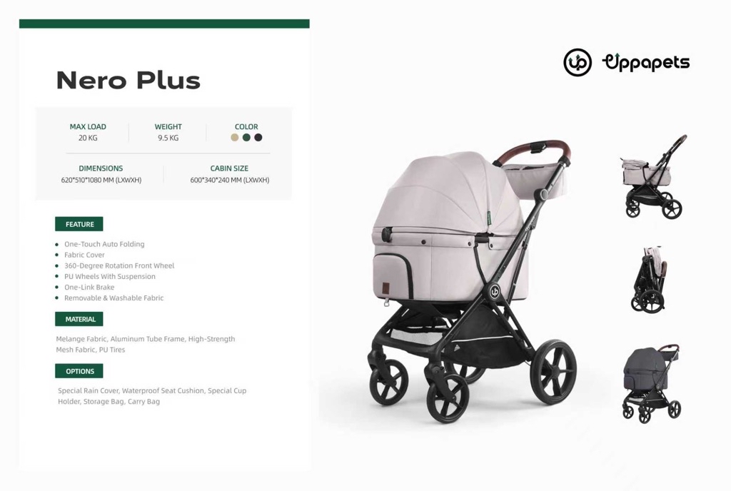 Built with a 20 kg max load capacity and weighing only 9.5 kg, the Nero Plus offers a sturdy yet lightweight solution for transporting small to medium-sized pets. Its spacious cabin size of 600×340×240 mm ensures your furry companion has plenty of room to relax, while the stroller strikes the perfect balance between comfort and portability.