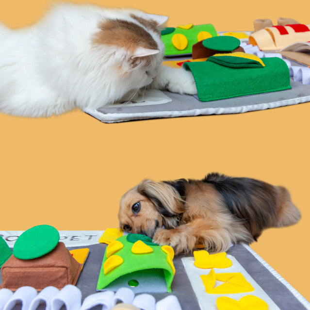 Not your ordinary snuffle mat! This GIANT snuffle mat from Pooz Pets has plenty of pocket to hide treats and variety of textured surfaces for hours of sniffing delight. Did you know that 20 minutes of sniffing is equivalent to an hour’s walk in terms of enrichment? A tired pet is a happy pet so hide treats in this snuffle mat and let your pet sniff away! Suitable for dogs, cats, rabbits and guinea pigs!